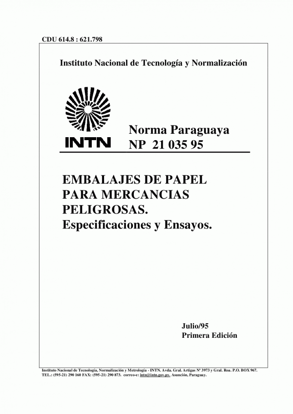 Esta norma tiene por objeto describir las especificaciones y métodos de ensayos establecidos internacionalmente para los embalajes de papel destinados al transporte de mercancías peligrosas.