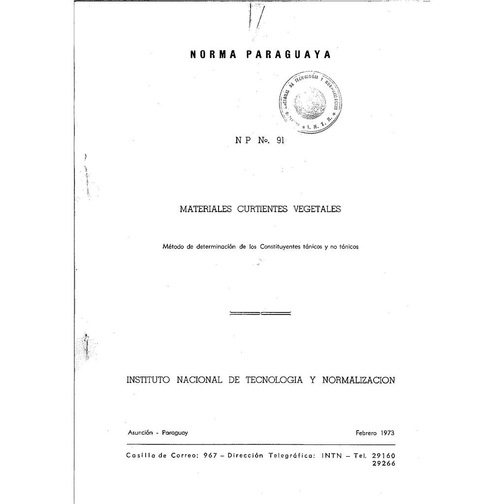 La presente Norma tiene por objeto establecer el método para determinar los constituyentes tánicos y no tánicos en una muestra de material, o en extracto líquido, sólido o en polvo.
